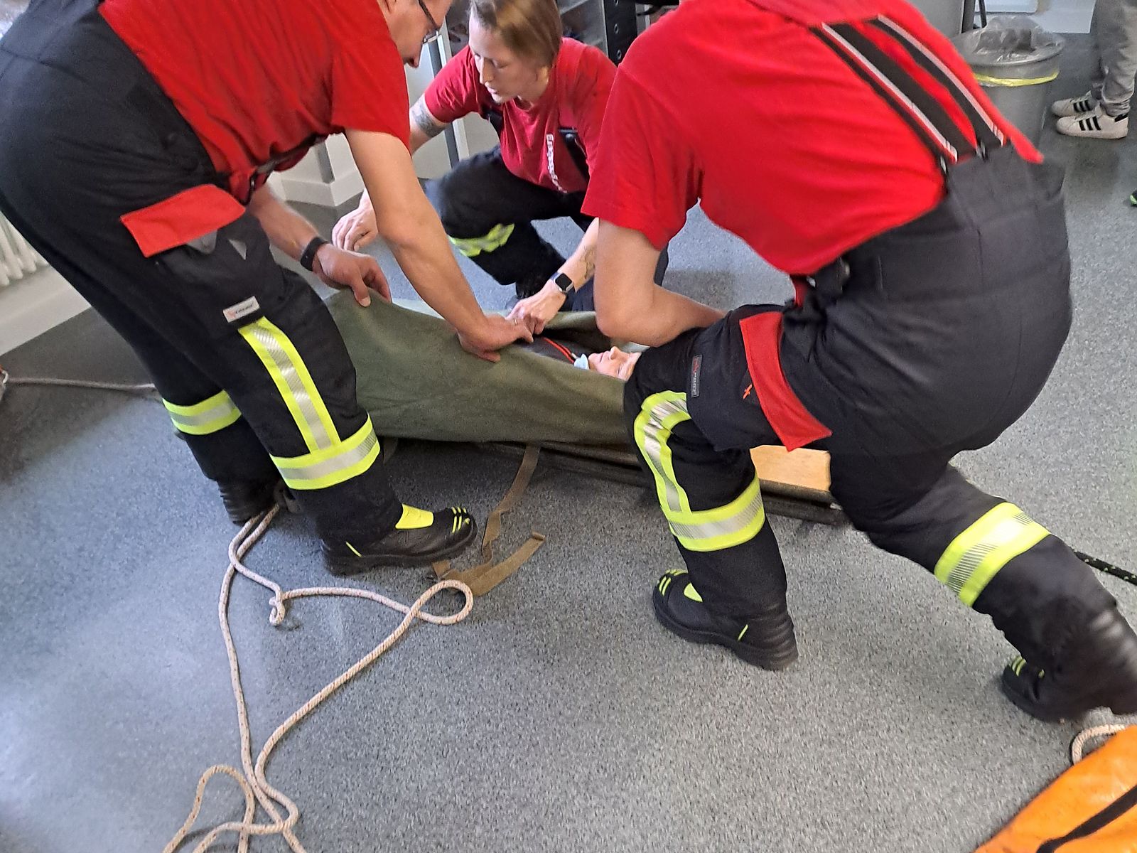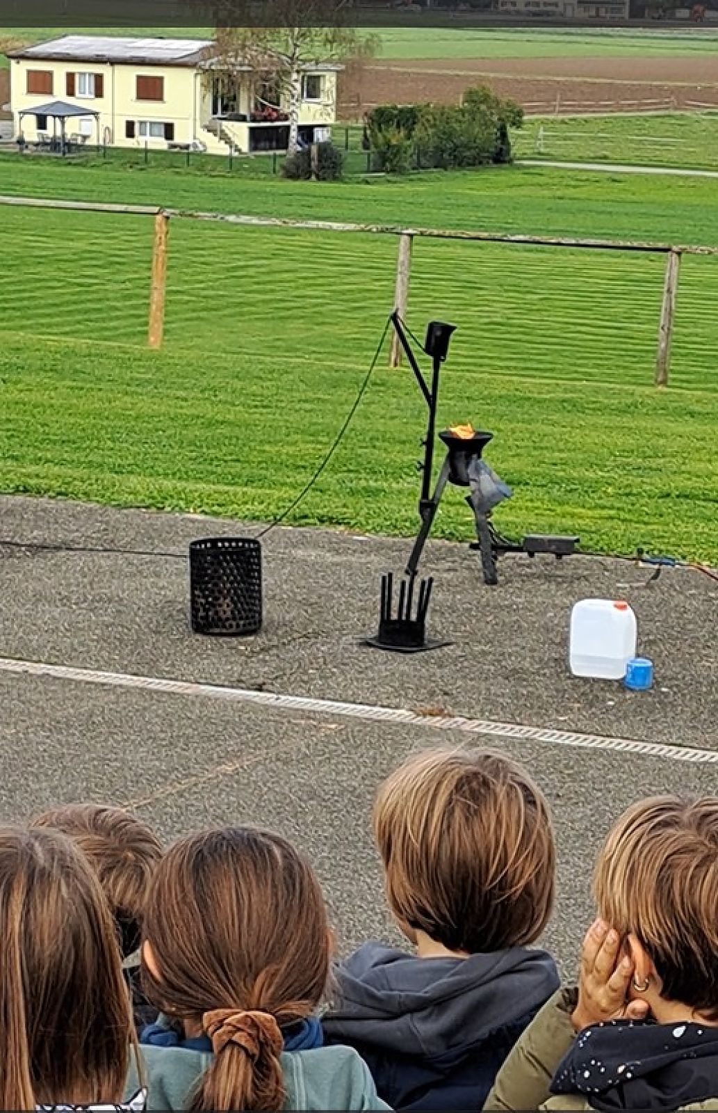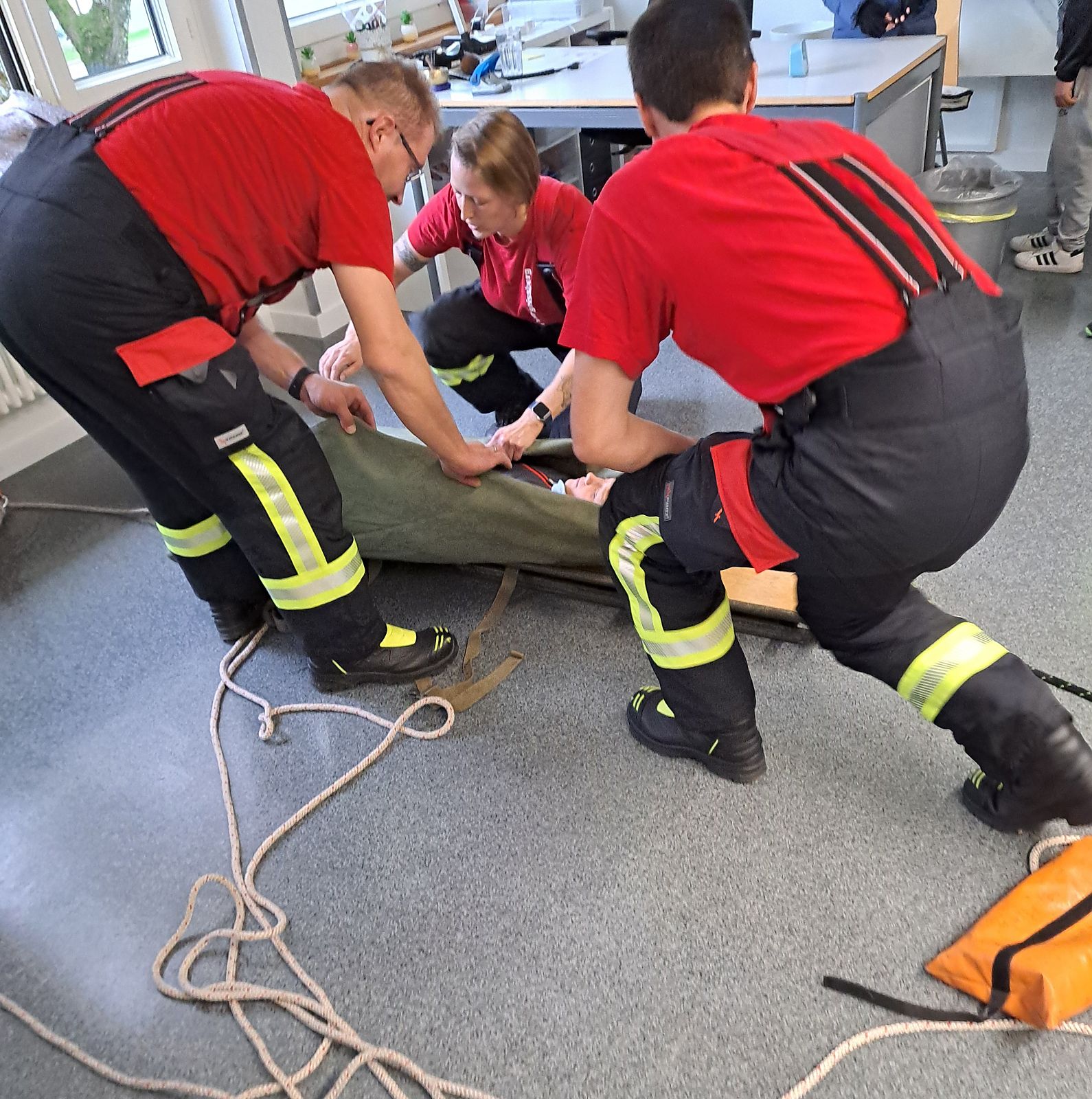 Nach einer Evakuationsübung im Schulhaus durften sie in Rüfenach bei diversen Posten zuschauen und auch selber mitmachen. Es gab Brände zu löschen, eine Simulation ohne Sicht mit Hindernissen zu erleben oder sie konnten der Sanität bei lebensrettenden Massnahmen über die Schulter schauen und es danach selber versuchen. Mit viel Freude haben die Kinder mitgeholfen und Vieles selbst ausprobiert.