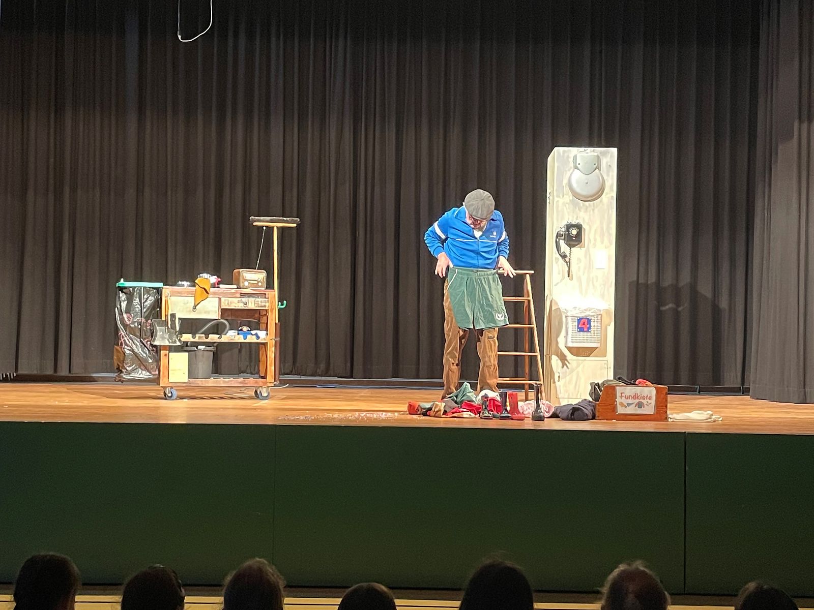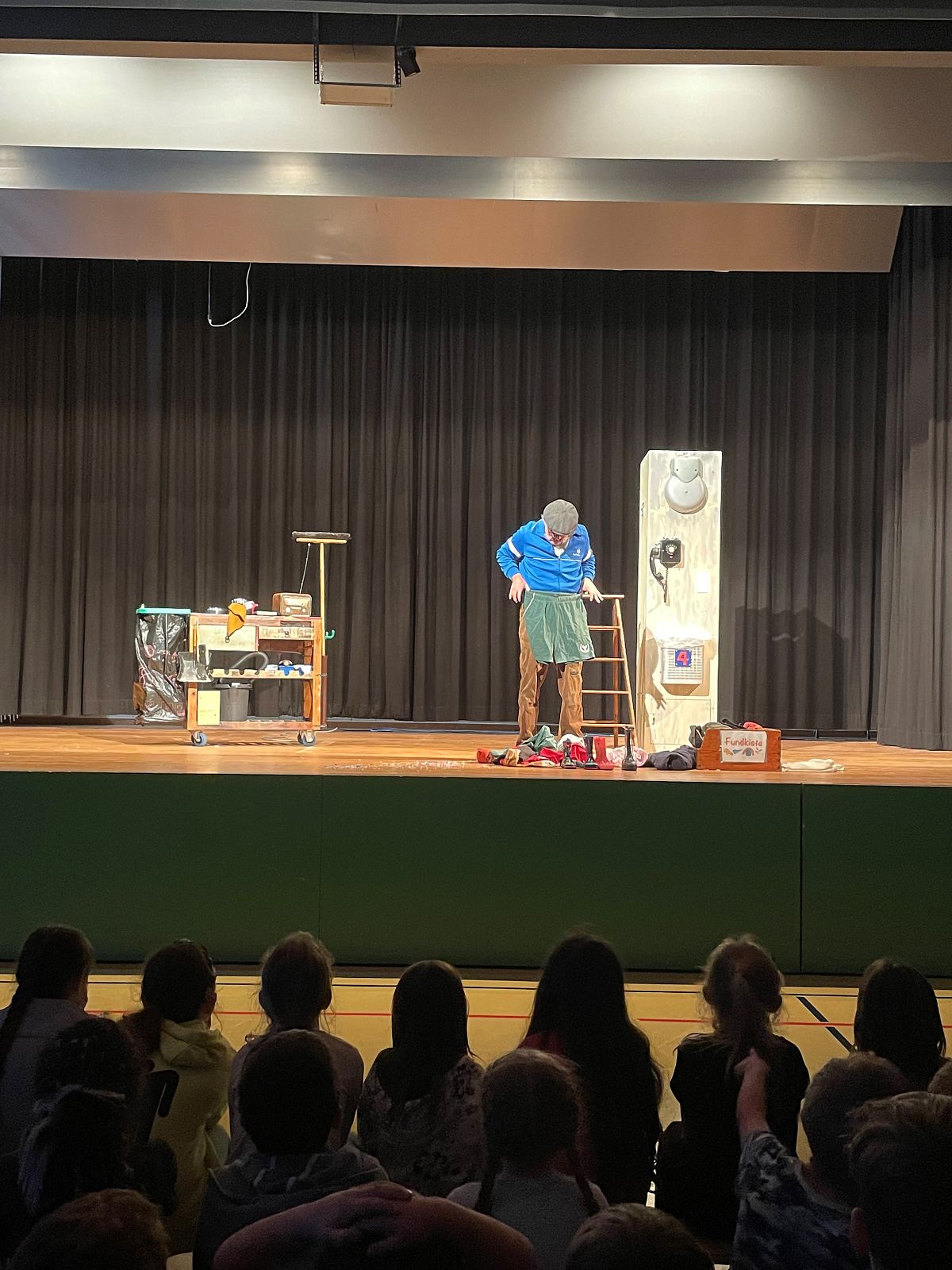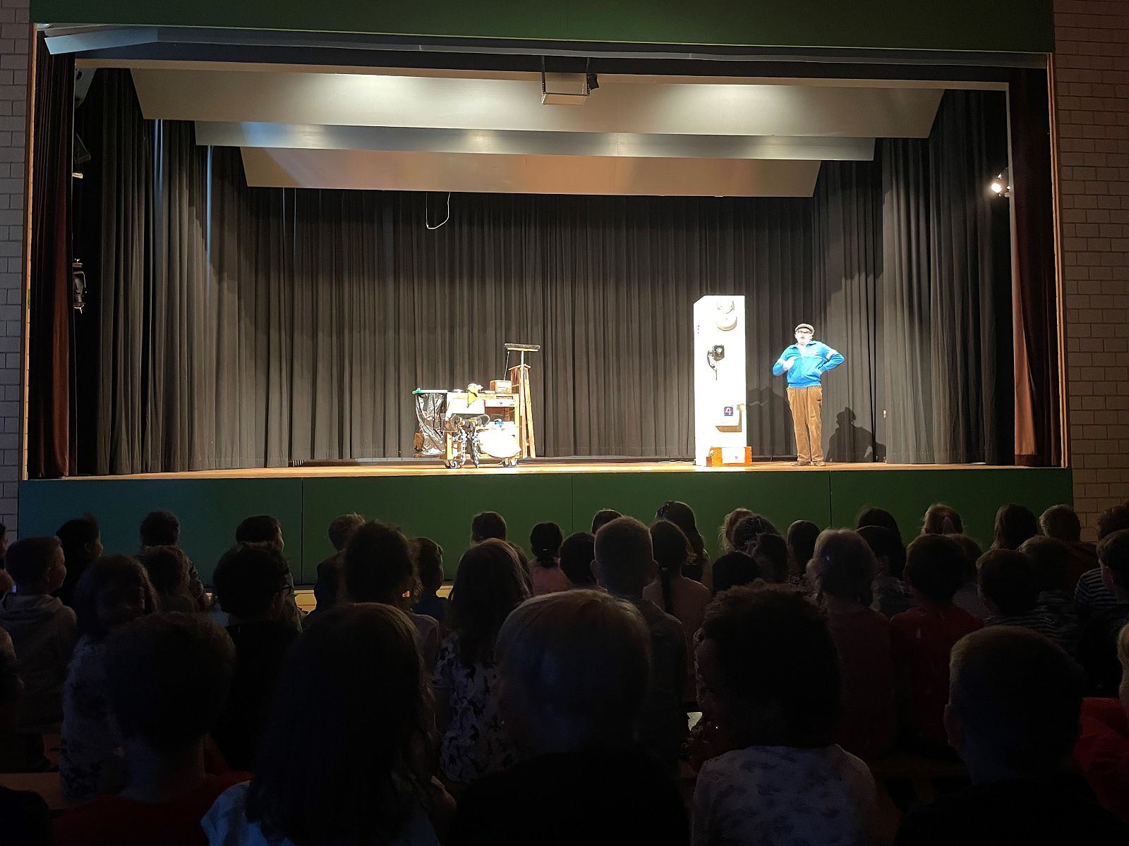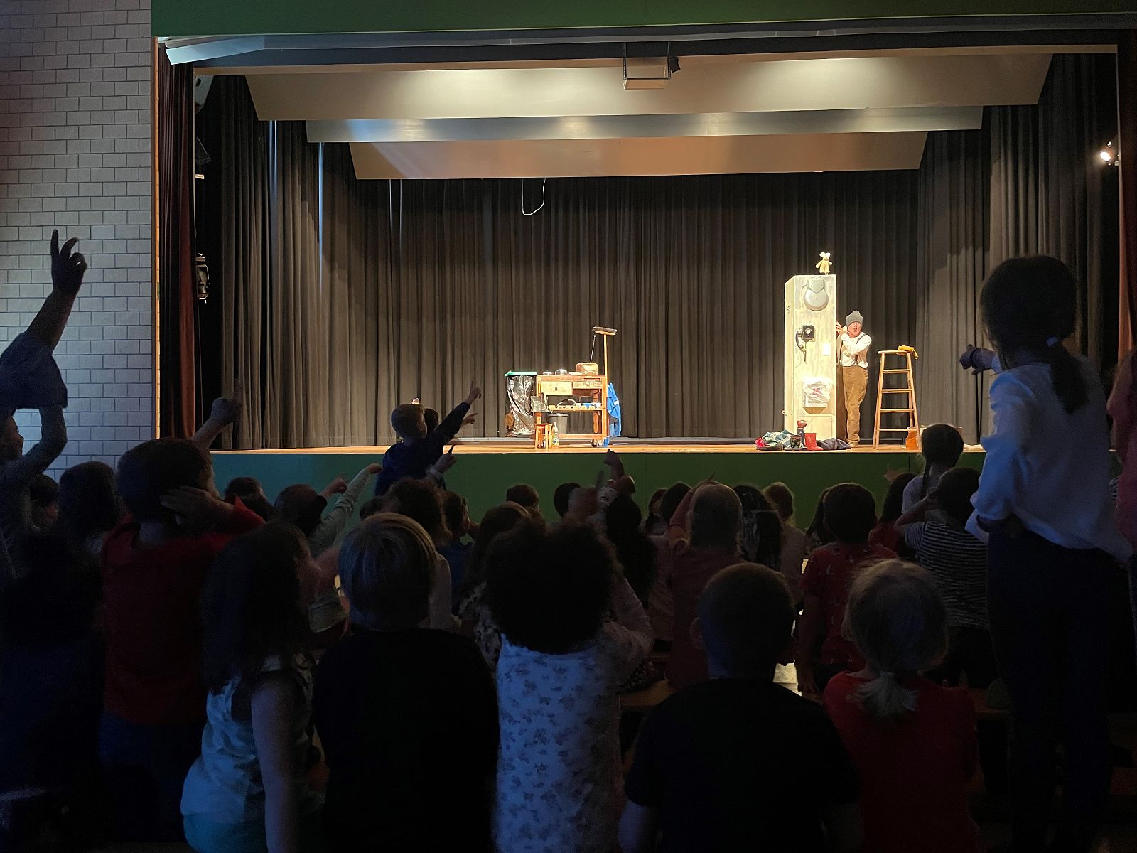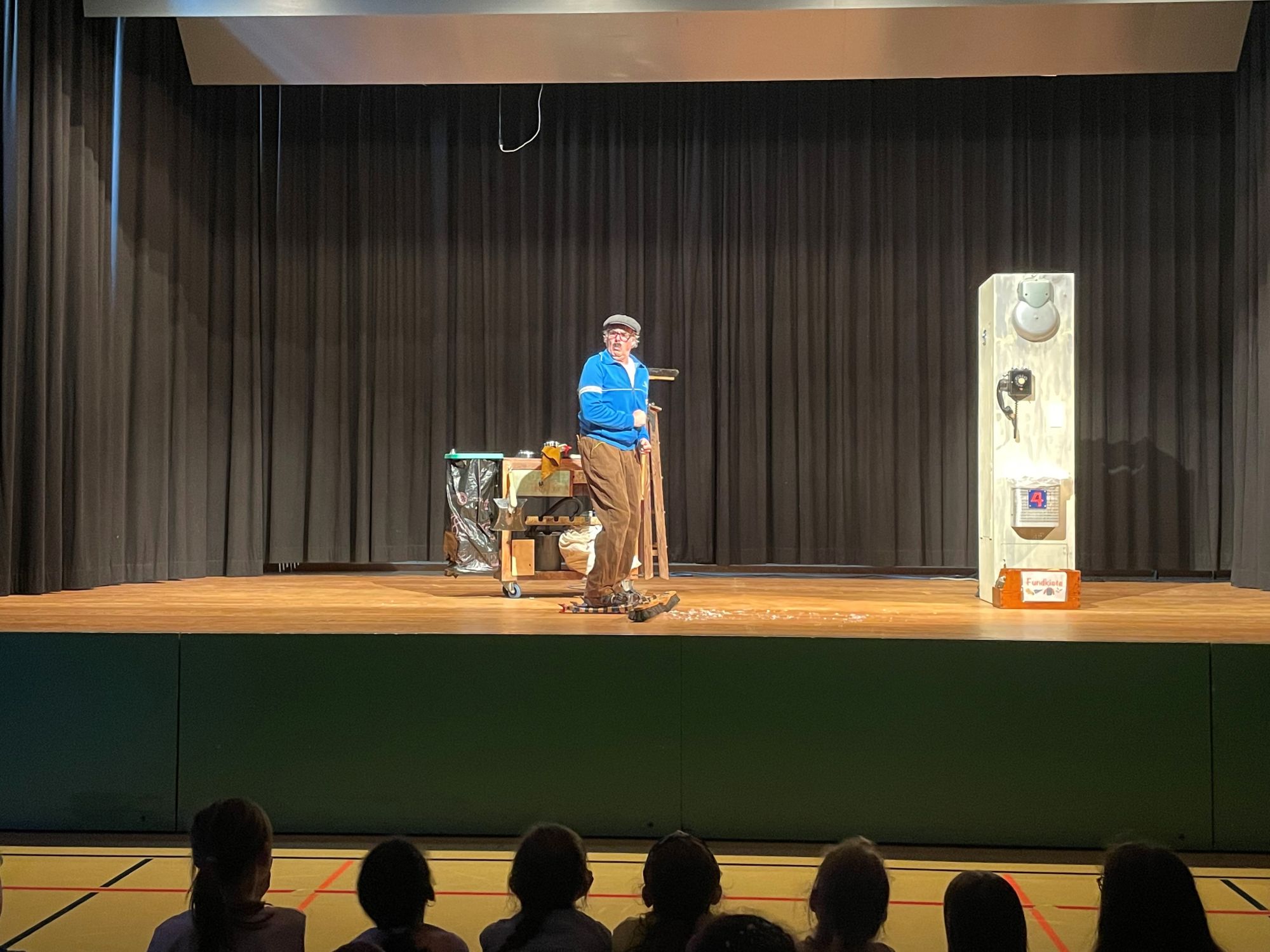 Die Kinder des Kindergartens und der 1. und 2. Klasse durften am Dienstagmorgen, 23. Mai, eine Theateraufführung in der eigenen Turnhalle erleben. Jörg Bohn kam mit seinem Theaterstück Bruno Hasenkind nach Villigen und verzauberte die Kinder mit seinem Spiel und den tollen Requisiten.