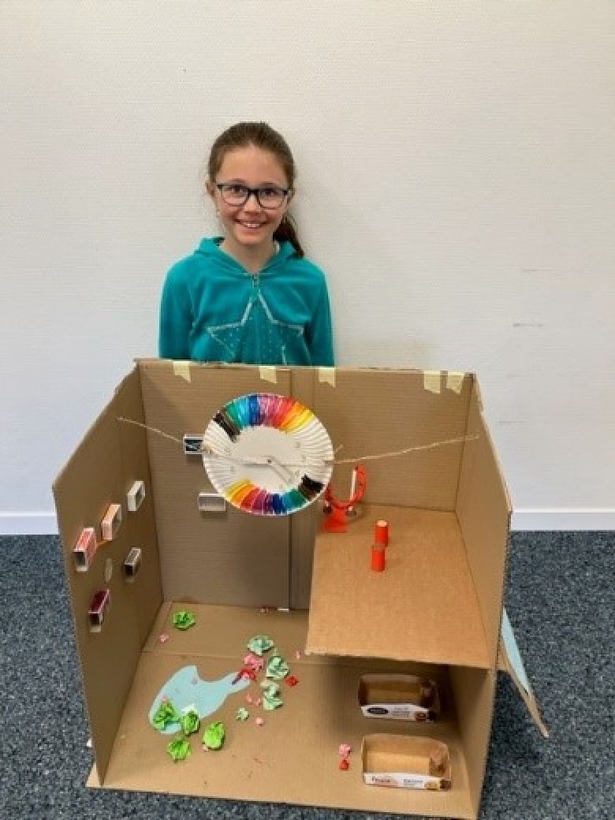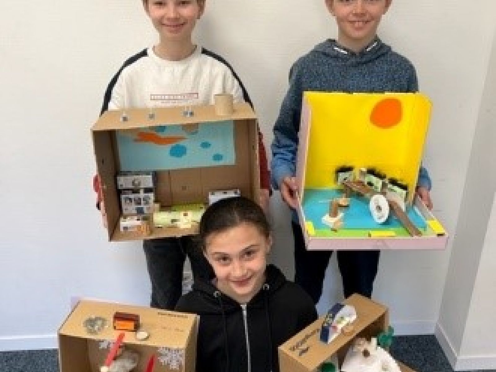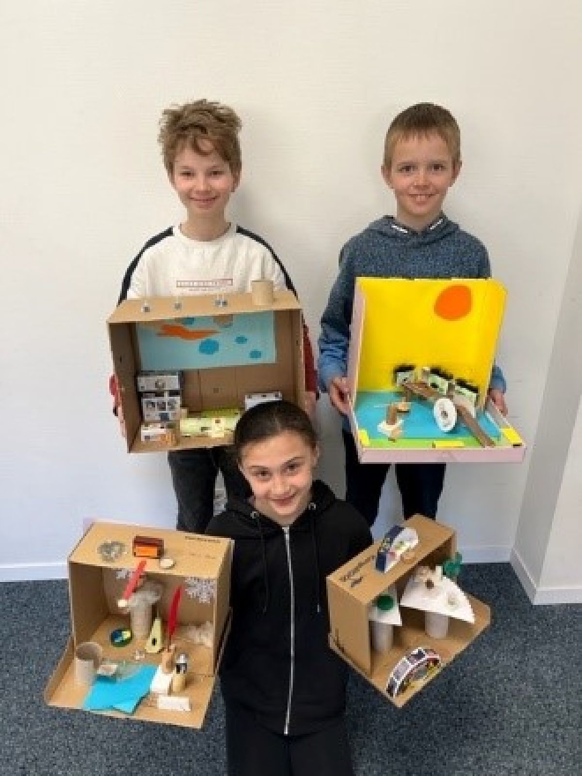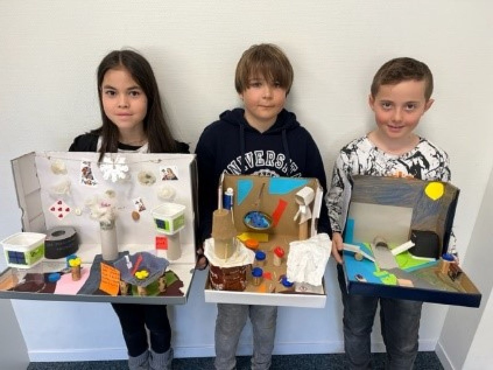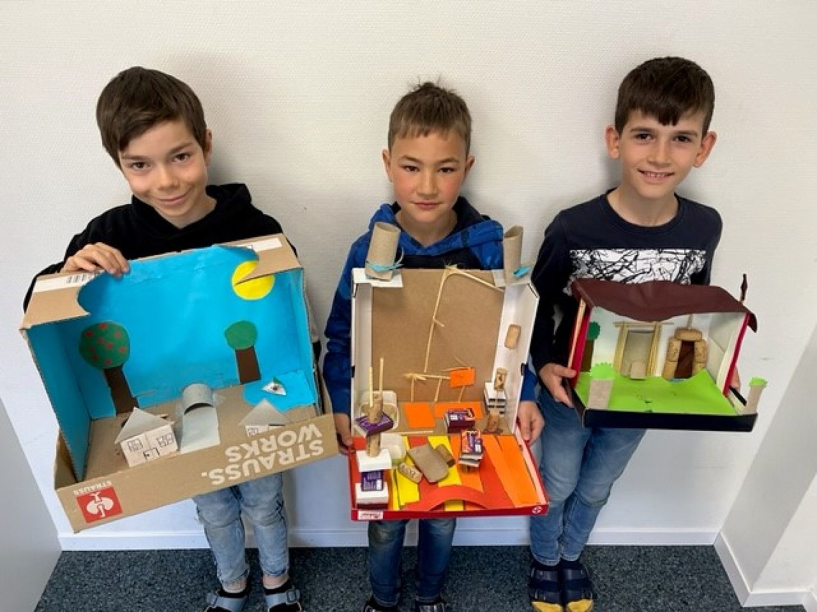 Nach diesen und weiteren spannenden Aktivitäten hatten die Kinder den Auftrag, sich zu überlegen, wie ihr Traumdorf aussehen würde, und dieses anschliessend in einen Schuhkarton zu bauen. Dabei sollten sie unteranderem darauf achten, dass im Dorf jemand leben könnte. Wichtige Fakten schrieben sie an eine Aussenwand.
