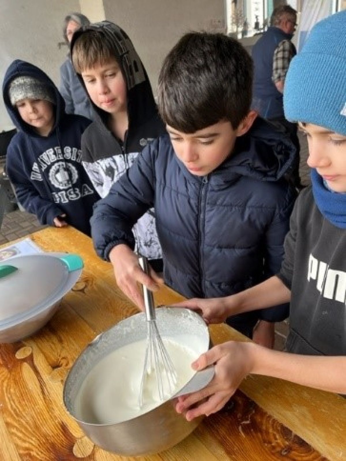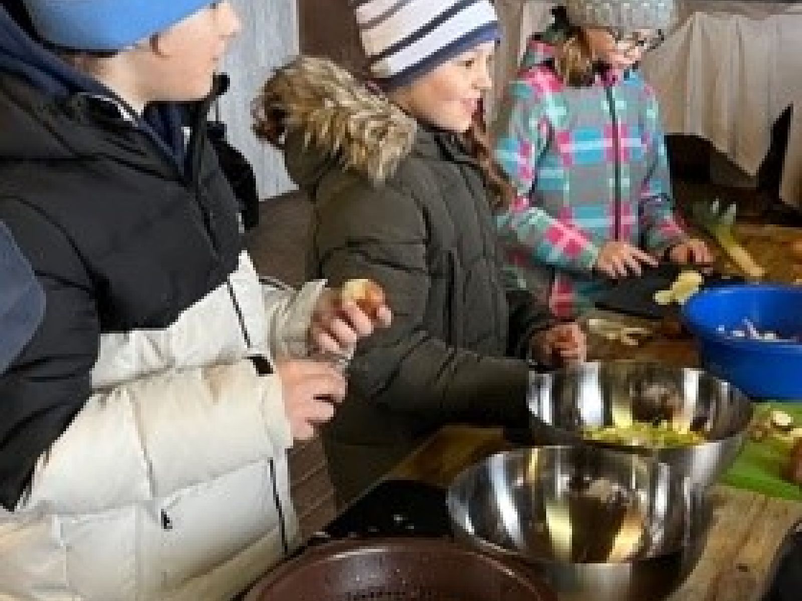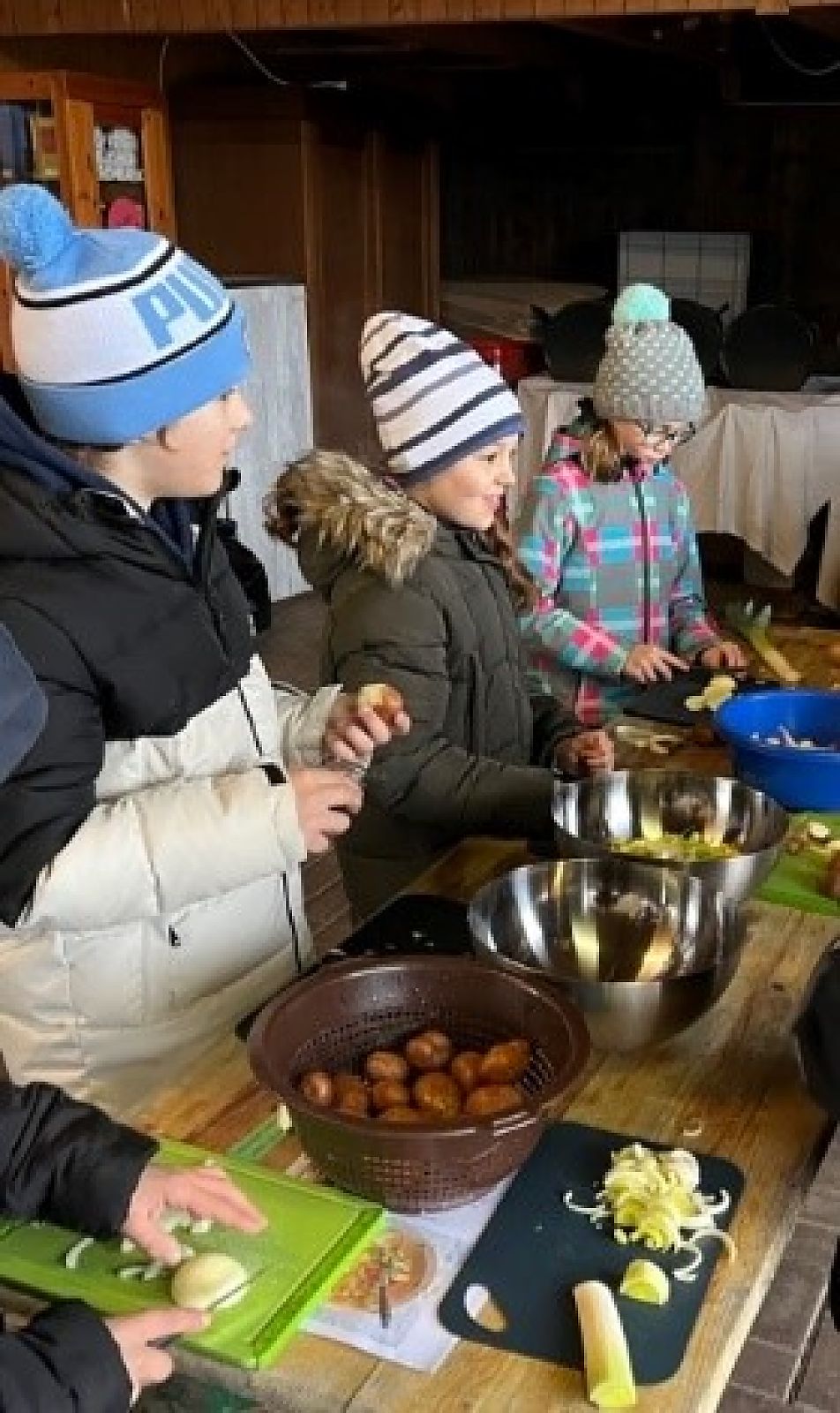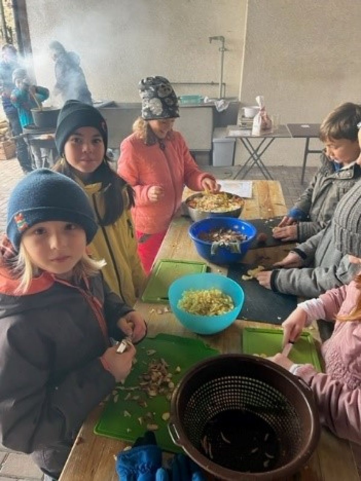 Der letzte Teil des Moduls war für die Kinder wohl der beeindruckendste, denn nun galt es, zu haushalten wie vor 100 Jahren. Während die Kinder gerne Wasser und Holz herbeiholten und auch beim Feuermachen mit viel Eifer dabei waren, stiess das Putzen und das Händewaschen in eiskaltem Wasser auf weniger Euphorie. Auch das Gemüse zu schneiden, machte nicht allen Schülerinnen und Schülern Spass. Während die Freizeit und das Essen wieder grosse Begeisterung hervorriefen.